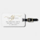 Ett minimalistiskt bagagetagg med guld och svart monogram snyggt på vit bakgrund, kontrasterat med en serif typography namn.