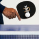 Modern pingpongpaddel med svart elegant, ett modernt gyllene monogram och ett vitt typografi namn. Anpassa med ditt namn och monogram.