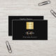 En svart bakgrund med vit och gyllene text. Anpassa och lägg till din logotyp, monogram initialer, första namn och fullt på framsidan. Tillbaka: Mallar för Ditt namn, titel, mobilt nummer, e-post, webbplats adress, din egen qr-kod till webbplatsen eller mediekontot för social.