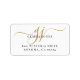 En minsta returadressetikett för guld och svart monogram snyggt på vit bakgrund, kontrasterad med en serif typography namn. Elegant stil för att klä ut din korrespondens eller märka dina personliga artiklar.