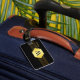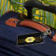 Den här bagagettegenskapen är svart med guld-accenter. Klicka på knappen CUSTOMIZE IT om du vill ändra, flytta, ta bort, ändra storlek på något av grafikobjekten eller lägga till egen text, teckensnitt och teckensnitt i färg.
