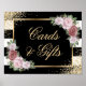 Låt gästerna veta var de ska lämna sina kort och presenter med den här eleganten, svarta och vita, randiga blommigt- och presentkort med rosa ros. Matchande objekt är tillgängliga.