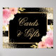 Låt dina gäster veta var de ska lämna sina kort och presenter med den här eleganten svarta och vita, randiga blommigt- och presentkort med guld-konfetti och vattenfärg rosa- och gylade grönska. Matchande objekt är tillgängliga.
