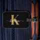 Den här enkla svarta bagagetaggen med elegant namn i ett typsnitt av trendiget i vitt och ditt första i ett modernt typsnitt i guld på ena sidan och ett kort för ditt namn, adress och mobila nummer på den andra sidan skulle se fantastisk ut på dina resväskor. Det är snyggt och trendig och ändå väldigt klassiskt.