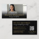 Affärskort för Vågrät av professionell för fotot QR-kod för företag. Det här eleganta och enkla affärskortet för vågrät är perfekt för företagsmärken, småföretag, konsulter, frilansare eller vilken professionell som helst som tittar för en modern estetisk elegant. Framsidan har foto, namn och titel eller namn på ett svart övertoningsvärde vid grund, med guld och vitt typsnitt för chic. På baksidan accentueras en solid svart bakgrund med guld och vitt typsnitt och detaljer, med kontaktinformation på den lämnat och QR-koden och valfria medieikoner i social på högerna grund. Typografi är en förfinad blandning av handskrivna skript-calligrafi och ett klassiskt serif-teckensnitt, som ge designen för en professionell ännu snyggt. Helt anpassade kan du justera typsnitt, färg och layouten till kostym under ditt varumärke.