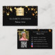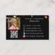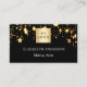 Klassisk svart bakgrund färg. Dekorerad med faux guld-stjärnor. Vit text och ikoner. Anpassa och lägg till din logotyp, profilbild, namn, titel och kontaktinformation. Lägg till URL/länk för webbplatsen till Qr-koden. Med Facebook- och Instagram-ikoner.