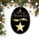 Skicka något söt från Texas underbara stat! På framsidan av detta prydnadsämne är en glansig guld-stjärna. Ovanför stjärnan är glitterelmeddelandet GOD JUL i skript och en banderoll med texten i svart TEXAS. Runt om är allt guld snöflingor. Bilder och text placeras på en dramatisk svart bakgrund. På utsmyckningens baksida finns fält i ljusa guld för att du ska kunna anpassa och en duplicerad stjärnbild. Du kan ändra bakgrunden till färg, om du vill, genom att välja CUSTOMIZE.