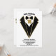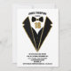 Fira din artonde födelsedag i stil och inbjudan med dina vänner och kära till din födelsedag med den här svarta och guld tuxedo-inbjudan.