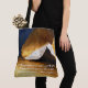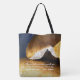 Modern Yoga Fitness Studio / Meditation Instructor / Personal Trainer / Life Coach / Healer / Reiki Master / Massage Therapy citerar Anpassningsbar All-over-Print Tote Bag Templates - "När du hittar fred inom dig blir du den typ av person som kan leva i fred med andra." - Peace Pilgrim - Elegant Painting som skildrar en Yogi-meditation med guldolja. Collage Inslag, färgens bakgrund visar ett guldfärgsberg som stiger över Yogi. Berget är tillverkat av guldfärgat Foil Collage Inslag. Berget symboliserar höjden på Yogis Andlig och radiansen på dess inre ljus. Mörk blått Himlar föreslår det allmänna omvärldens fasthet och mysterium, liksom sambandet mellan yoghi och den kosmetiska energin.
