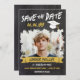 Coola studenten sparar datumkortet med en utskriven ritbordsbakgrund och ett coola med en ritbordsteckensnitt med en gult och vit studentmössa i ett bedrövligt utseende. Lägg till ett foto av student inuti ett penseldrag ram. Trött kalkylbord studenten sparar personligen på datumkortet med ett foto och med gult som accent färg. En coola med en fotomall.