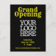 Utformningen har stor gult i svart bakgrund, är designad för att bli uppmärksam och lätt att läsa. Ladda upp företagets logotyp och uppdatera information om öppningsdatum och -tid för Grand Open, samt företagets webbplats eller eventuell ytterligare information som du vill med dina kunder. Och Grattisar på ditt nya företag!