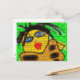 Black Hair Bee Woman Graffiti Wall Grönt Vykort