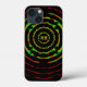 En pulserande, strålande geometrisk grafisk design med ett svart tema i hål sol och en röd, grönt och svart palett i färg. Den är bildad med monogrammad text och är en helt redigerbar mall.