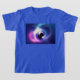 En grå bild med flera färgader som antyder att upphettade gaser faller i ett svart hål, som läggs ovanpå en stjärnbakgrund. Lägg till din egen text.