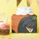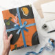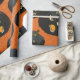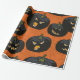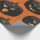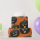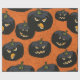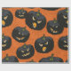 Roligt svart jack-o-lyktor mot skokiga spindelnät på orangens bakgrund