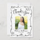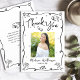 Make sure your favorite grad shows appreciation to all who supported their milestone event! Send out this quirky, playful, simple, modern, personalized photo thank you card. On the front, fun black handwritten script typography and hand drawn graduation icon sketch doodles, along with your custom photo, overlay a minimal white background. Add the photo of your choice and personalize the custom text with your grad’s name, and class year. On the back, type in your custom message or delete the copy altogether so you can write your own handwritten note. Matching invites, address labels, banners, stickers, hand fans and other graduation goodies are also available in this trendy and stylish collection. Guaranteed to add a stylish touch to their correspondence!