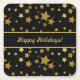 Black Happy Holidays Coaster with Golden Stars Underlägg Papper Kvadrat