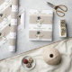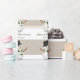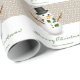 Desteis tecknad illustrerar ett sött leende snögubbe. Snögubbe bär en svart hatt och en sjalv som har grönt och vitt rand. Bakgrunden färg är beige med en mönster av vita prickar. Under bilden står "God jul!" i grönt färg. Det finns också ett anpassningsbara textområde där du kan skriva till vem presenten är till eller från vem den kommer från till exempel.