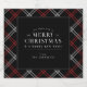 Svart Helgdag Play-etiketter för juldrycker. Vit typografi på svart bakgrund med samordning av helgdag plaid mönster gräns.