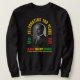 Colorful BLACK HISTORY MONTH CENTENNIAL sweatshirt, celebrating its centenary from Negro History Week to Black History Month.Design shows image of Dr Carter Woodson, founder of Negro History Week in an arched frame. Ideal souvenir sweatshirt to wear to celebrate 100 years of Black History Month.