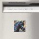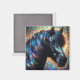 Den graverande svarta hästen som adorberats med en sjudande, flerfärgad mane som ställs mot en luminös baksida som är fylld med glitter, som visar skönhet, elegans och unika egenskaper.