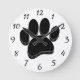 Tecknad hund pawprint i svart. Faux 3D-effekt tillämpad på bilden. Anpassningsbarnas väggklocka för hem och företag som djuraffärer. Gift-idé för hundälskare.