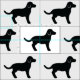 Den här väven har en mönster av söta svarta hund silhuetter. Hund liknar en Labrador Retriever.