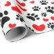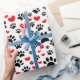 Teckning av svart hund tass avtryck och röda hjärtan i många storlekar. Anpassningsbarnas presentemballering av pappra rullar. Underbar för personlig party-dekoration. Tanken på att ge upp för människor i alla åldrar som kärlek hundar.