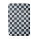 A seamless pattern of alternating black and light blue squares creates a classic checkerboard effect. The design is symmetrical and evenly spaced.