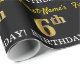 Den pappra utformningen av denna förpackning innehåller ett budskap som "First-Namn's 6e BIRTHDAY!", där "6e" har ett utseende som liknar guld/imitation färg. Namn kan vara personlig, och bakgrunden är färgad svart. Det kan kanske användas när man slår in presenter för någons sjätte födelsedag. [~Z0000177]