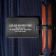 Bild av en svart bakgrund med ett monogram i svart och vit text. Modern manlig design.