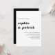 Den här snyggtens bröllopsinbjudan blandar vintagens elegans med modern bekvämlighet. Med fet, svart, retro-italisk typografi framkallar det en tidlös känsla i mitten av århundradet samtidigt som sak hålls i gång med en skannerbar QR-kod för dina bröllop-detaljer. Den minimalistiska utformningen gör den idealisk för ett stort antal teman, från klassiska svarta tidningar till contemporary firande i städerna. Använda den redigerbara texten fält för att enkelt lägga till namn-, datum- och platsinformation och länka sedan webbplatsen OSA eller bröllop via QR-koden. Denna utformning är perfekt för par att tittar effektivisera sitt inbjudan samtidigt som man skapar ett sofistikerat intryck.