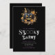 Den här inbjudan från Halloween fest anger en spoky- och snyggt-ton med sin svarta bakgrund och ord "Spooky Party" i ett läskigt magasin eller ett utskärningsteckensnitt i vitt och lila. Teckensnittet lägger till en kyllande beröring, perfekt för ett Halloween-firande. I centrum för inbjudan finns en grå svart jack-o'-lantern, omgiven av blommor och löv från guld och grått, som skapar en förfärligt vacker brännpunkt. Färg-schemat med svart, vitt, lila, guld och grått skapar ett slående och atmosfäriskt utseende som är perfekt för ett Halloween-firande med en aning elegans. Den svarta jacken-o'-lantern lägger till en känsla av mysterium och pookism till inbjudan, medan blommorna och löven guld och grått tillför en aning glamor. Tillsammans skapar dessa inslag en utformning som är både modern och sofistikerad och som utgör en del av ett minnesvärt Halloween fest. Baksidan av inbjudan fortsätter temat med sin slimmade svarta bakgrund, vilket garanterar ett sammanhängande och snyggt utseende. Oavsett om du är värd för ett hemsökt hus party eller en sofistikerad maskerad boll, är det här inbjudan att ange perfekten för Halloween firande. Inbjudan dina gäster går med dig för en natt med tricks och behandlar den här fantastiska inbjudan till Halloween fest.