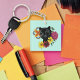 En svart jaguar katt porträtt med färgstark mexikansk bricka och blommor.