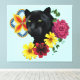 Black Jaguar Porträtt Flowers Canvastryck