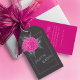 Bläck kamellia bröllop rosa grått brun presentetikett