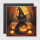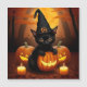 Black Kitten i Witch Hat Amid Halloween Pumpkins