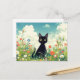 Black Kitten in Sunny Wildflower Summer Meadow Vykort