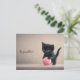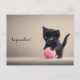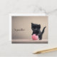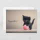 Det här är ett sött vykort med ett foto av en svart kattunge som leker med en rosa boll av ull. Det finns ett positivt standardmeddelande som du kan anpassa "vara försiktig".