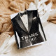 Tack för att du deltar i din bröllopsdag! Tack marskalkarna! Mitt tack, svart och vit illustration av kostym med blank insida.