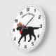 Snyggt svart labrador-väggklocka i vitt. En bra tittar Black Labrador med sin tio gallonhatt på huvudet. Cowboy stil. Du kan ändra text. Stollig och lustig Labrador Retriever Tecknad Design skapat av Naomi Ochiai från Japan. Underbar roligt ger till hundälskare som kärlek Labradors.