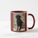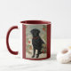 En svart Labrador Retriever sitter på en snövinter-scen, inramad av holly grenar med röda bär. Hund har en röd färg och tittar direkt på visningsprogrammet med en lugn och ett värdigt uttryck. Bakgrunden har en snöskog med obarmhärtigt grenar och en mjuk, muterad palett i färg. Bilden visar på en känsla av lugn och en vacker vinter.