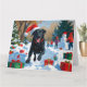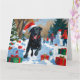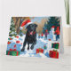 En helgdag med hjärtslitande hund i snö, som bär en julhatt och omges av färgfulla presentlådor. I bakgrunden bygger barn snögubbe bredvid ett Julgran som är täckt av snö och skapar en glatt vinter under. Perfekt för att sprida helgdag och fånga julens magi.