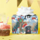 En helgdag med hjärtslitande hund i snö, som bär en julhatt och omges av färgfulla presentlådor. I bakgrunden bygger barn snögubbe bredvid ett Julgran som är täckt av snö och skapar en glatt vinter under. Perfekt för att sprida helgdag och fånga julens magi.