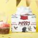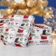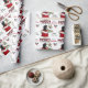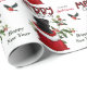 Det upprepade mönster på denna söta julomslutning papper är en bild av en vacker svart Labrador Retriever-hund som pendlar ut från en röd och vit Helgdag-presentväska. Bakom honom ligger en sprit av grå och röda bär. En röd och svart bullfinkfågel kommer snart att landa. Stiliserad röd och svart buffelpläterad text säger GOD JUL och "Gott nytt år" är mörk grönt. Din egen namnteckning finns i två fält för att du ska kunna anpassa dig. Se till att du ser de matchande presenternas märkre.