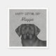 Äger du din Lab-dag/det datum då din valp gått med din familj? Eller planerar du en födelsedagsfest för husdjurstemat? Om så är fallet är den här snygga, personlighetsdugliga Labrador Retriever-designen perfekt för dig! Utformningen har Desteis ursprungliga tecknad som illustration av en svart jacka färg Labrador Retriever-rasen hund's head-up som en porträtt. Hund har ett vänligt ansikte-uttryck som är inramat av hennes stora diskett öron. Bakgrunden färg är grått med ett dekorativt struktur. Bakgrunden till färg kan också ändras till vilket annat färg som helst och struktur kan tas bort om så önskas. Det finns också två anpassningsbara textområden ovanför perfekten för djurets namn och titeln för firande.