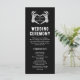 Svart, långt bröllopsprogram för en "til death do us part"-skelettceremoni och brudens sida-tema. Fullständigt anpassade med dig speciella dagsevenemang och meddelanden till dina gäster.