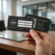 Clean and upscale, this black art deco design pairs a structured appointment layout with refined geometric corner accents for a polished professional look. The front features fill-in lines for client name, date, time, and notes, making it ideal for booking reminders and scheduling details. The back includes a bold QR code area for quick contact or rescheduling, plus space for business information and branding. A strong choice for real estate agents and other appointment-based professionals who want a modern, minimalist presentation.