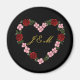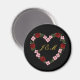 Make a bold statement with our 'Romantic Rose' Black Edition wedding magnet. This striking design features a lush heart-shaped wreath of vibrant red and soft pink roses set against a sophisticated black background, creating a dramatic 'Dark Romance' aesthetic.