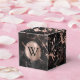 Den här presentlådan har en svart marmorbakgrund med högdagrar i ro guld. Anpassa framsidan med ditt inledande svart på en dubbla-kantad faux-folie i ro guld som borstat metall.